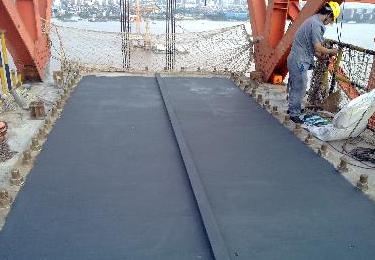 亿霖润滑员工在做复合润滑涂层,跨江大桥鞍体鞍座润滑工程系统,公路大桥鞍座与座体间自润滑减磨结构,技术方案:钛晶核处理技术,二硫化钼自润滑减磨涂覆技术,超润滑石墨希氟油涂覆技术,高强二硫化钼合金珠分布技术,抗高极压二硫化钼油脂技术,五种技术优势的叠加形成的复合涂层。